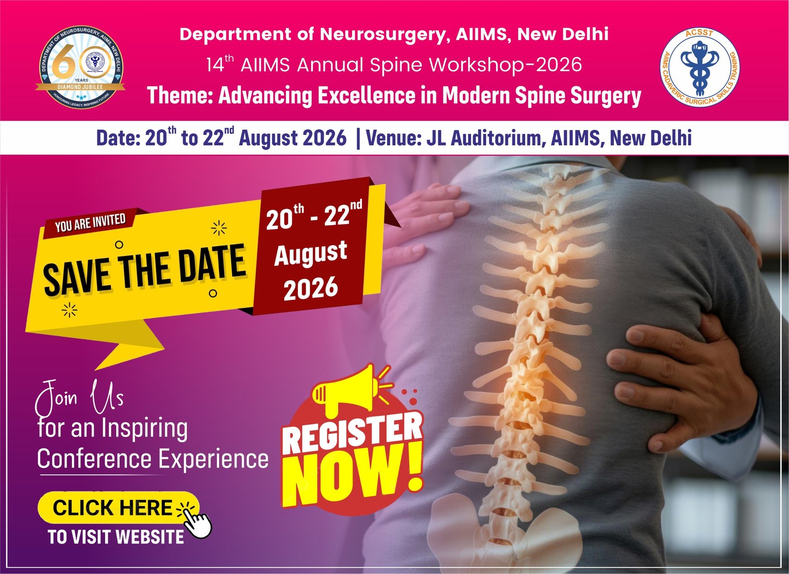 We welcome you to Delhi, the capital city of India for a never academic feast and look forward to meeting you in AIIMS Annual Spine Workshop (AASW-2025) at AIIMS, Delhi.